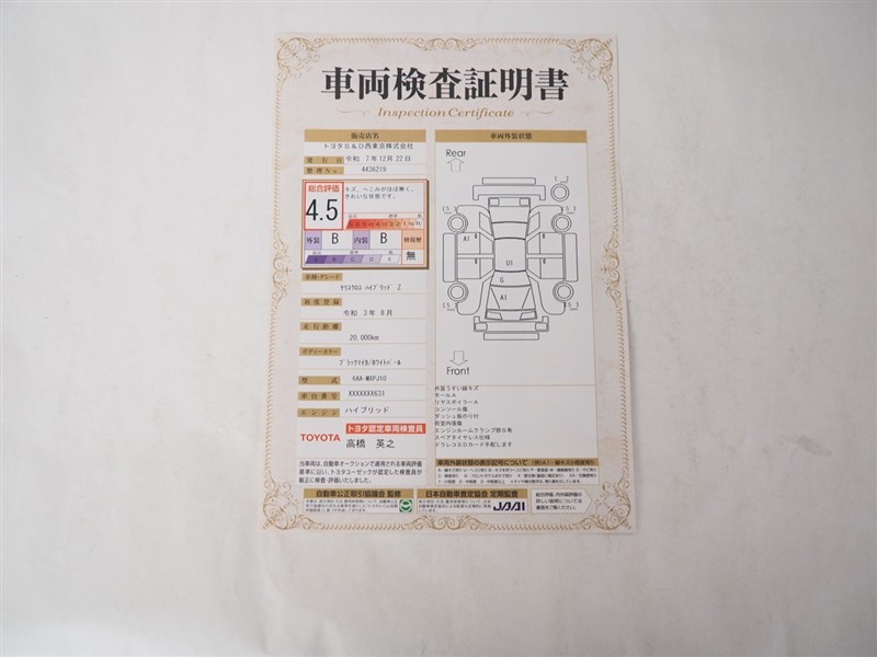詳細及び現状の車両状態につきましては、店舗スタッフまでお尋ねください。 - 注2)上記と同様の評価点・状態表を「車両検査証明書」として店舗の展示車両に搭載しております。