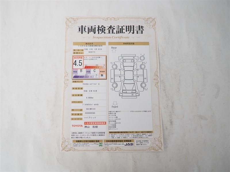 詳細及び現状の車両状態につきましては、店舗スタッフまでお尋ねください。 - 注2)上記と同様の評価点・状態表を「車両検査証明書」として店舗の展示車両に搭載しております。