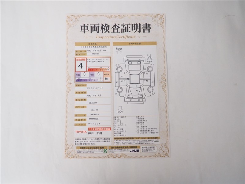 | 内装評価 | C | 標準的に使用されていて、気になる使用感やいたみが若干あります。 | ![]() |