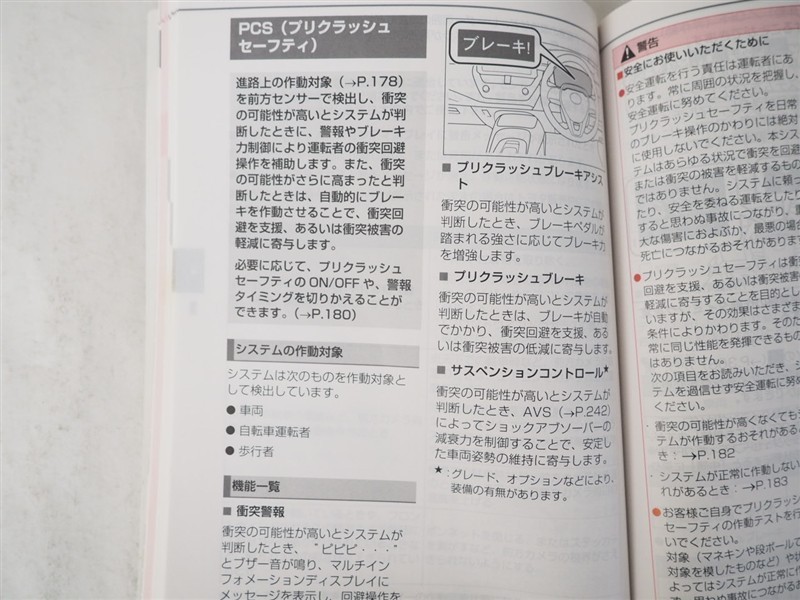 - 予防安全装置の各機能の作動には、速度や対象物等の条件があります。また、道路状況、車両状態、天候等により作動しない場合があります。