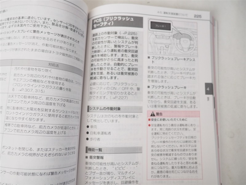 - 予防安全装置の各機能の作動には、速度や対象物等の条件があります。また、道路状況、車両状態、天候等により作動しない場合があります。