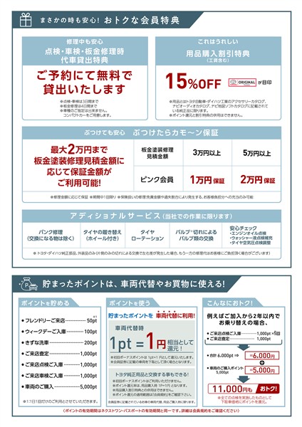 - 表示項目・方法・運用体制等について、自動車公正取引協議会の定める基準を満たした「トヨタU-Car品質評価制度」に基づき作成しております。