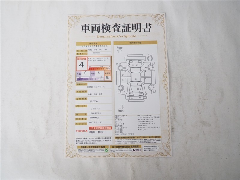 • 注2)上記と同様の評価点・状態表を「車両検査証明書」として店舗の展示車両に搭載しております。
