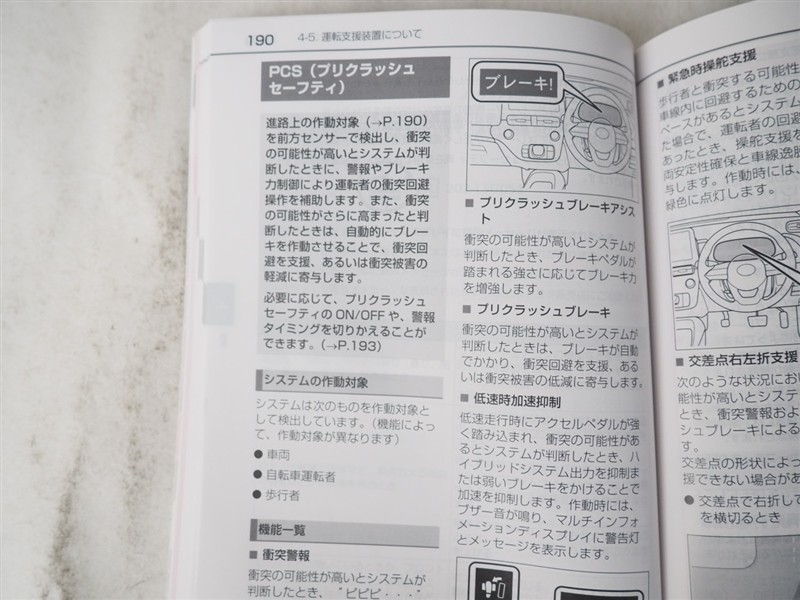 - 予防安全装置の各機能の作動には、速度や対象物等の条件があります。また、道路状況、車両状態、天候等により作動しない場合があります。