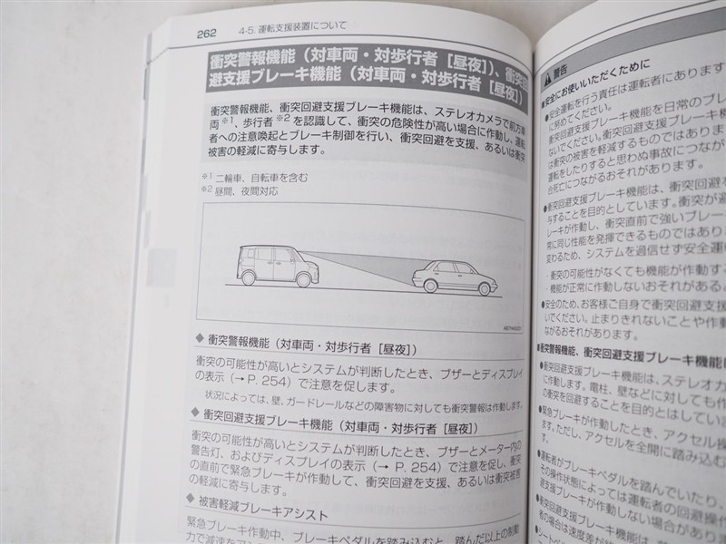 - 予防安全装置の各機能の作動には、速度や対象物等の条件があります。また、道路状況、車両状態、天候等により作動しない場合があります。