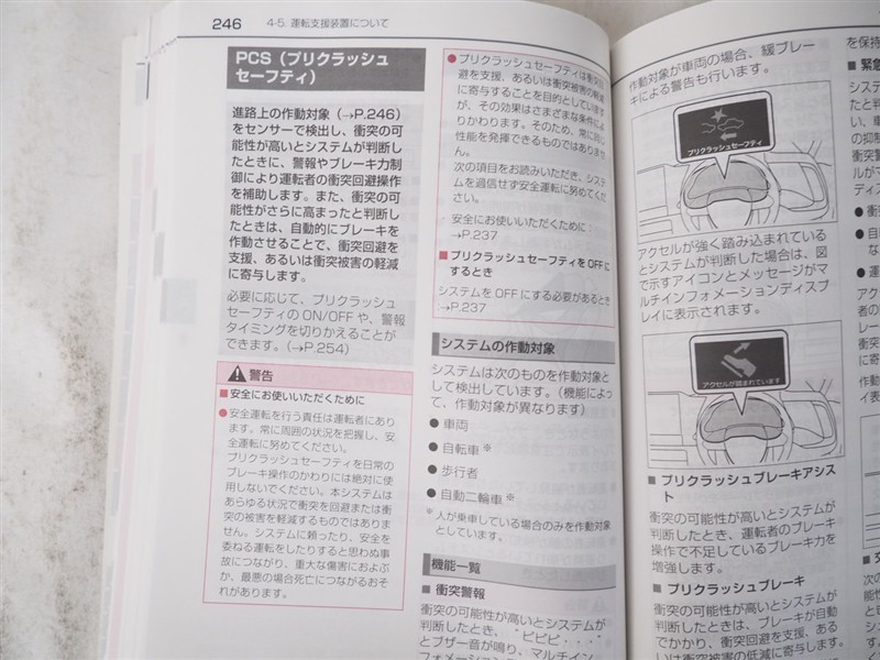 - 予防安全装置の各機能の作動には、速度や対象物等の条件があります。また、道路状況、車両状態、天候等により作動しない場合があります。