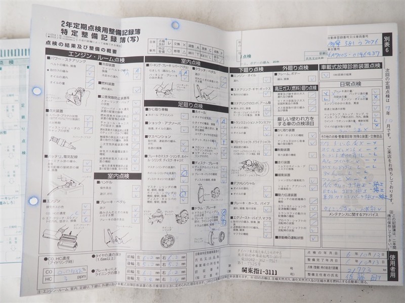 - 「定期点検整備なし(要整備箇所あり)」の場合、整備箇所につきましては、販売店へお問合せください。