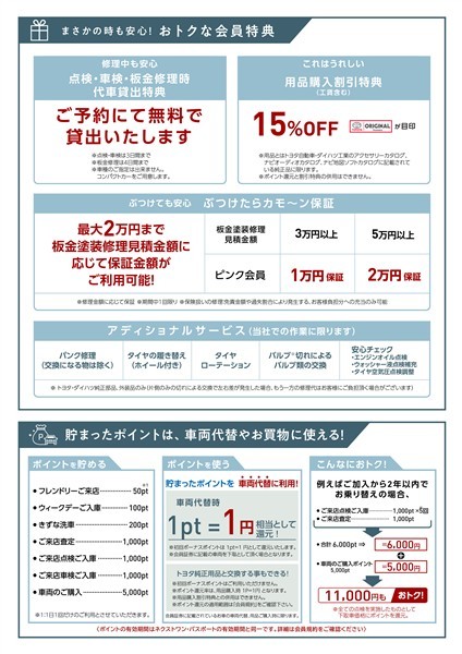 - 表示項目・方法・運用体制等について、自動車公正取引協議会の定める基準を満たした「トヨタU-Car品質評価制度」に基づき作成しております。