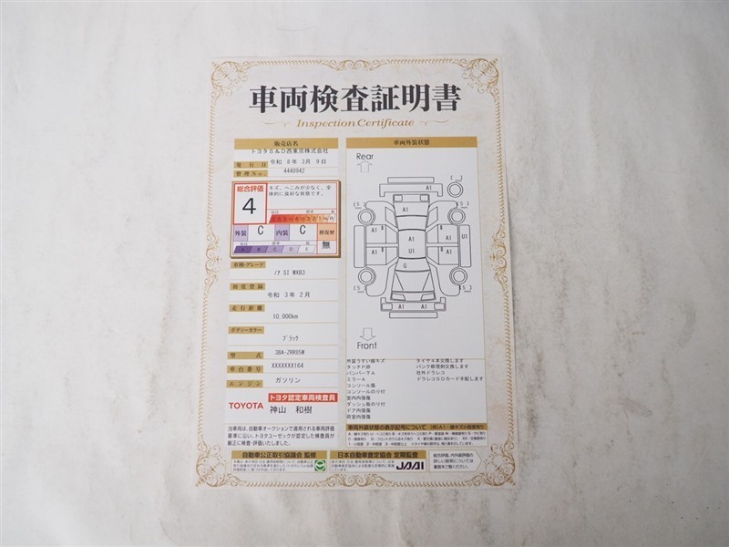 • 注2)上記と同様の評価点・状態表を「車両検査証明書」として店舗の展示車両に搭載しております。