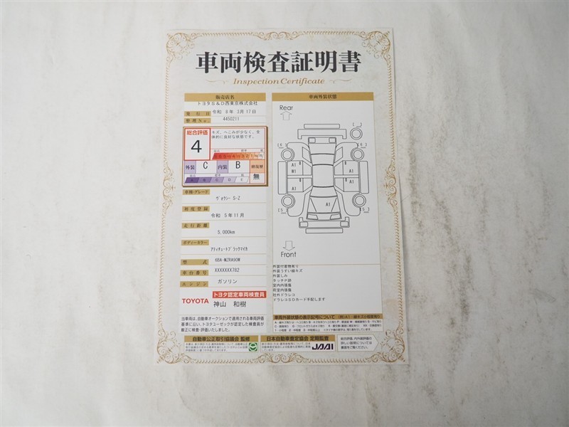 詳細及び現状の車両状態につきましては、店舗スタッフまでお尋ねください。 - 注2)上記と同様の評価点・状態表を「車両検査証明書」として店舗の展示車両に搭載しております。