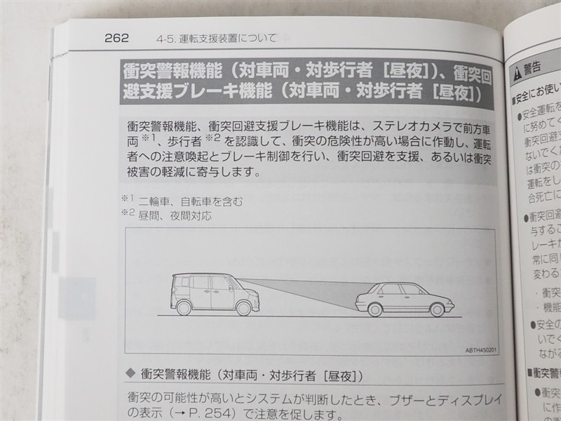 - 予防安全装置の各機能の作動には、速度や対象物等の条件があります。また、道路状況、車両状態、天候等により作動しない場合があります。