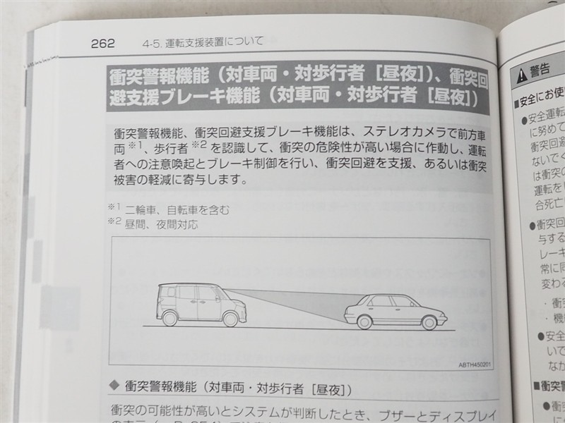 - 予防安全装置の各機能の作動には、速度や対象物等の条件があります。また、道路状況、車両状態、天候等により作動しない場合があります。