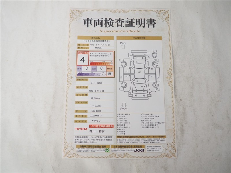 • 注2)上記と同様の評価点・状態表を「車両検査証明書」として店舗の展示車両に搭載しております。