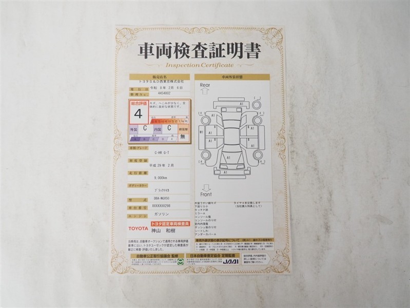 詳細及び現状の車両状態につきましては、店舗スタッフまでお尋ねください。 - 注2)上記と同様の評価点・状態表を「車両検査証明書」として店舗の展示車両に搭載しております。