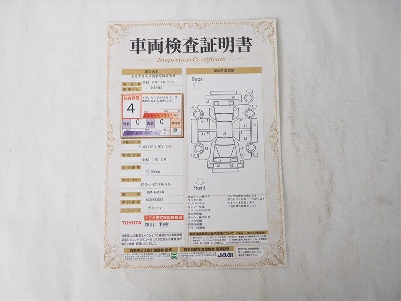 詳細及び現状の車両状態につきましては、店舗スタッフまでお尋ねください。 - 注2)上記と同様の評価点・状態表を「車両検査証明書」として店舗の展示車両に搭載しております。