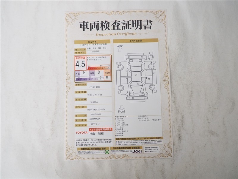 - 表示項目・方法・運用体制等について、自動車公正取引協議会の定める基準を満たした「トヨタU-Car品質評価制度」に基づき作成しております。