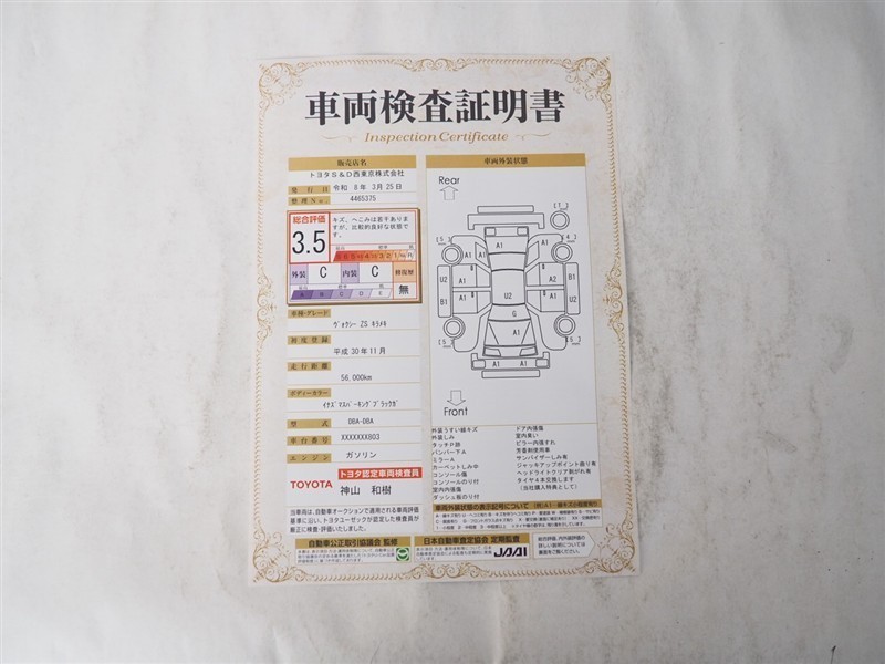 • 注2)上記と同様の評価点・状態表を「車両検査証明書」として店舗の展示車両に搭載しております。