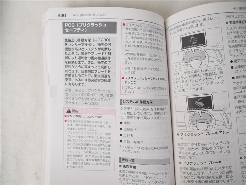 - 予防安全装置の各機能の作動には、速度や対象物等の条件があります。また、道路状況、車両状態、天候等により作動しない場合があります。