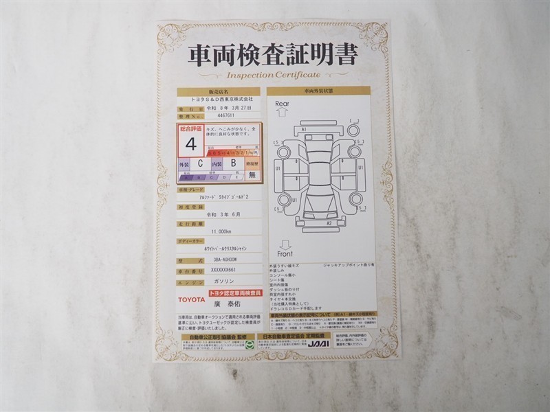 詳細及び現状の車両状態につきましては、店舗スタッフまでお尋ねください。 - 注2)上記と同様の評価点・状態表を「車両検査証明書」として店舗の展示車両に搭載しております。