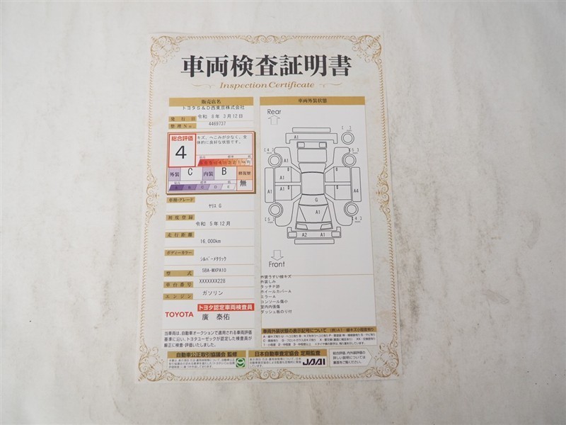 詳細及び現状の車両状態につきましては、店舗スタッフまでお尋ねください。 - 注2)上記と同様の評価点・状態表を「車両検査証明書」として店舗の展示車両に搭載しております。
