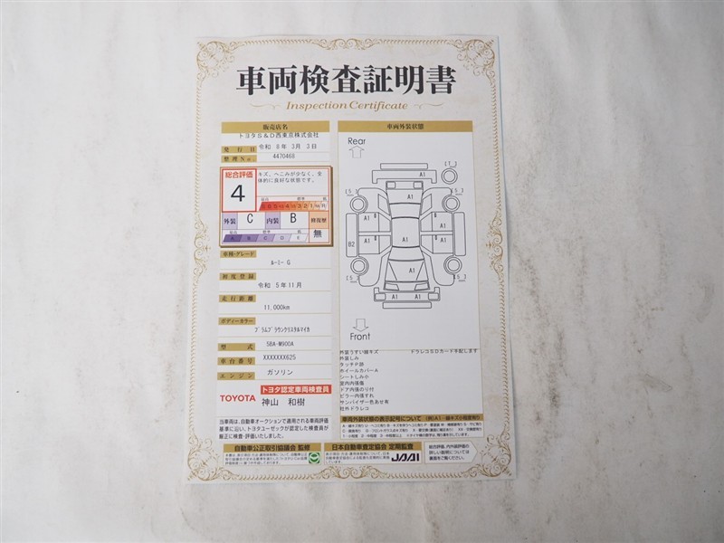 詳細及び現状の車両状態につきましては、店舗スタッフまでお尋ねください。 - 注2)上記と同様の評価点・状態表を「車両検査証明書」として店舗の展示車両に搭載しております。
