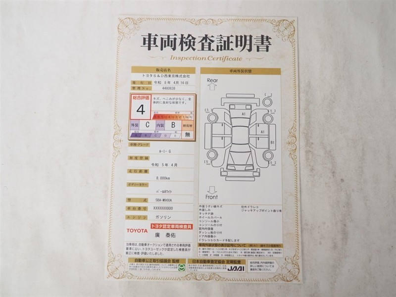上記と同様の評価点・状態表を「車両検査証明書」として店舗の展示車両に搭載しております。