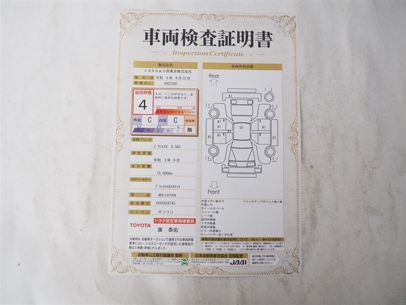 店舗管理ナンバー【436044482300】車台番号(下3桁)【743】