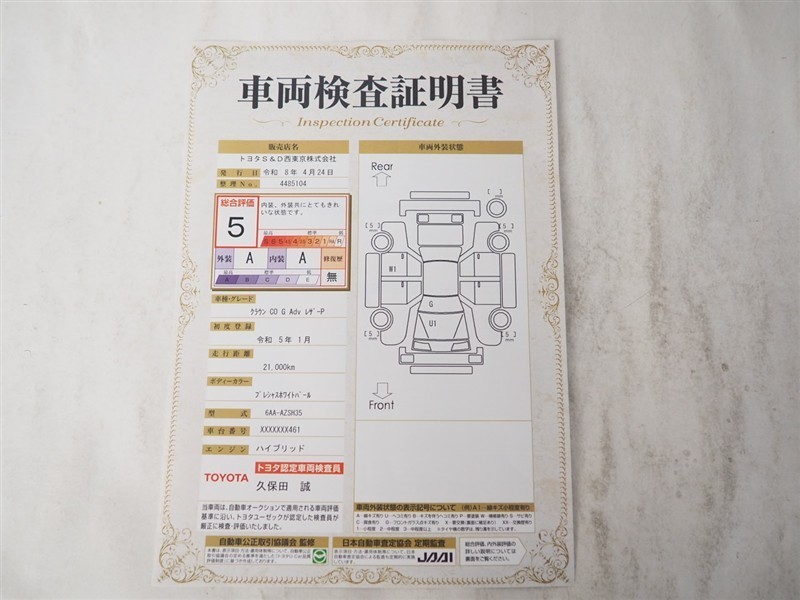 本ページに掲載された評価は、車両検査実施時の車両状態を示したものです。