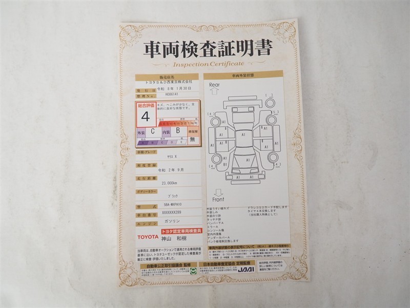 詳細及び現状の車両状態につきましては、店舗スタッフまでお尋ねください。 - 注2)上記と同様の評価点・状態表を「車両検査証明書」として店舗の展示車両に搭載しております。