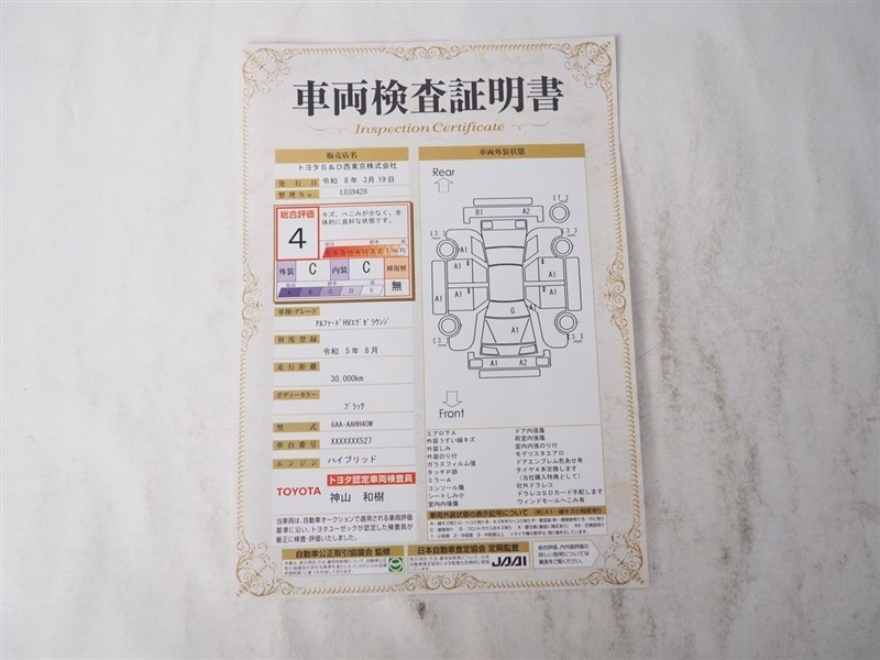 詳細及び現状の車両状態につきましては、店舗スタッフまでお尋ねください。 - 注2)上記と同様の評価点・状態表を「車両検査証明書」として店舗の展示車両に搭載しております。