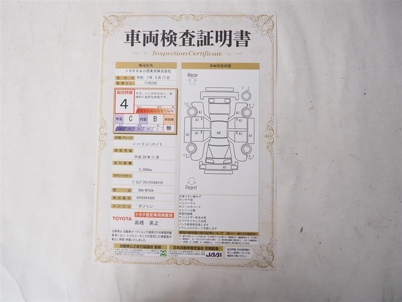 詳細及び現状の車両状態につきましては、店舗スタッフまでお尋ねください。 - 注2)上記と同様の評価点・状態表を「車両検査証明書」として店舗の展示車両に搭載しております。