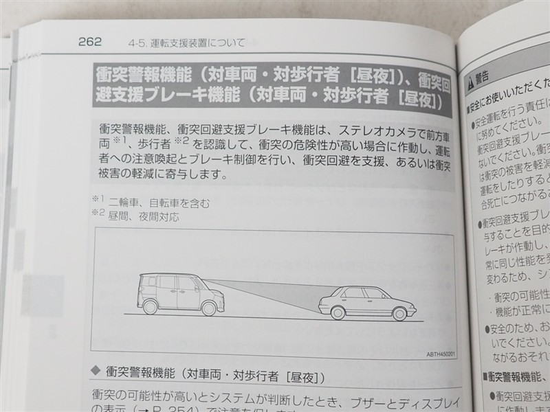 - 予防安全装置の各機能の作動には、速度や対象物等の条件があります。また、道路状況、車両状態、天候等により作動しない場合があります。