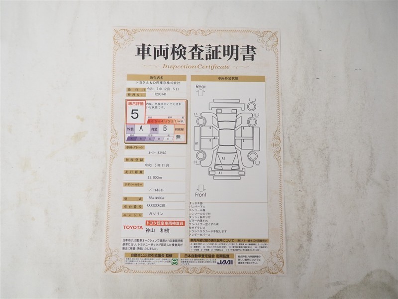 詳細及び現状の車両状態につきましては、店舗スタッフまでお尋ねください。 - 注2)上記と同様の評価点・状態表を「車両検査証明書」として店舗の展示車両に搭載しております。