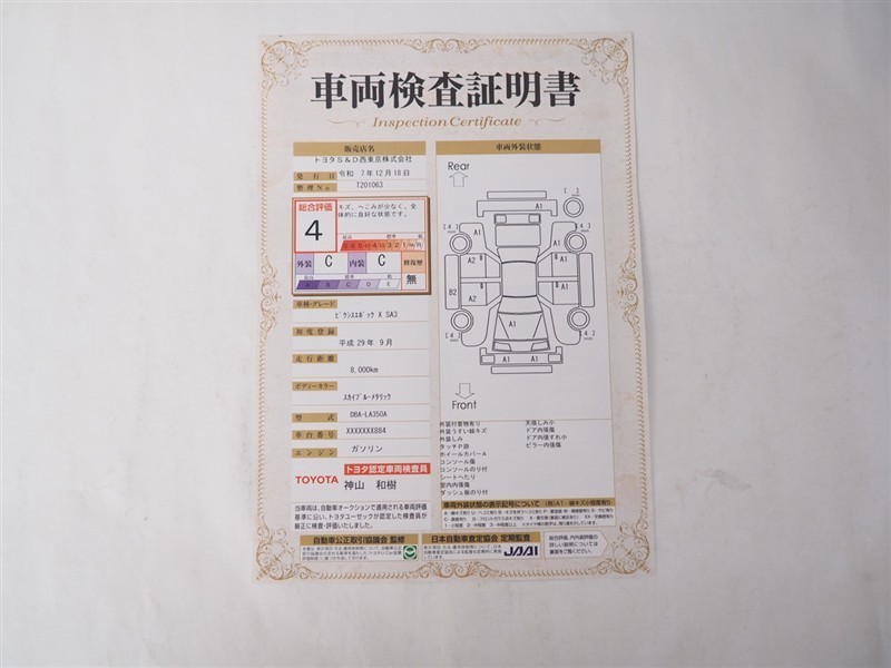 • 注1)本ページに掲載された評価は、車両検査実施時の車両状態を示したものです。