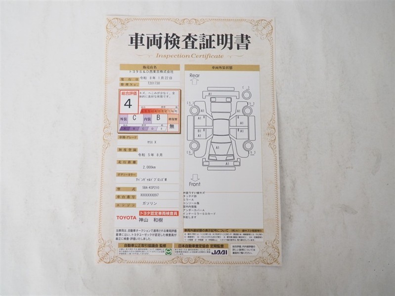 詳細及び現状の車両状態につきましては、店舗スタッフまでお尋ねください。 - 注2)上記と同様の評価点・状態表を「車両検査証明書」として店舗の展示車両に搭載しております。