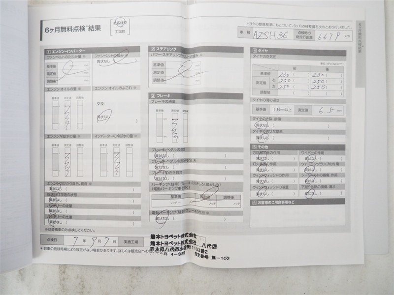- 「定期点検整備なし(要整備箇所あり)」の場合、整備箇所につきましては、販売店へお問合せください。