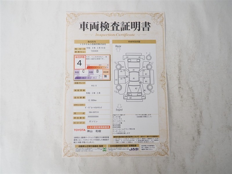 - 表示項目・方法・運用体制等について、自動車公正取引協議会の定める基準を満たした「トヨタU-Car品質評価制度」に基づき作成しております。