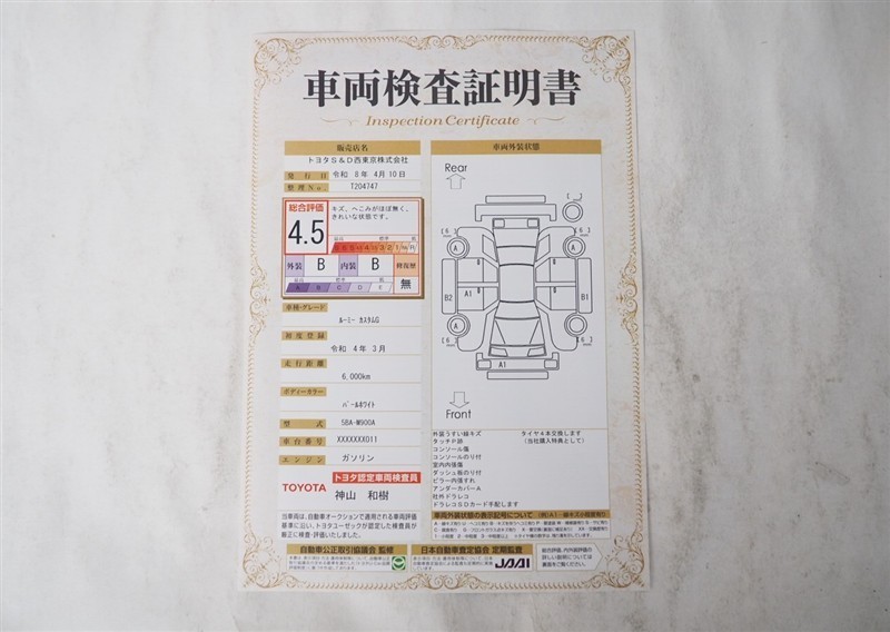 • 注2)上記と同様の評価点・状態表を「車両検査証明書」として店舗の展示車両に搭載しております。