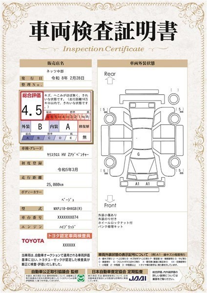 本ページに掲載された評価は、車両検査実施時の車両状態を示したものです。