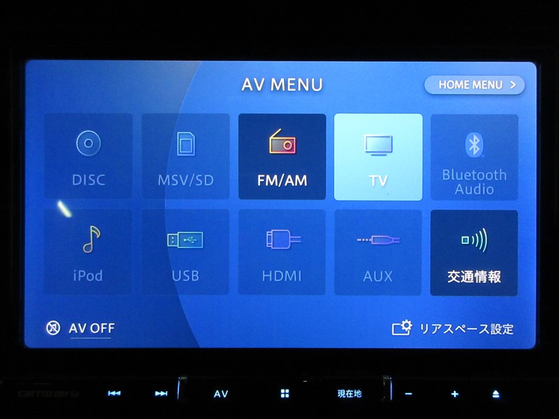 | カーナビ/DA | メモリーナビ(IN) またはナビ付きDA | TV | 地デジ(ワンセグ) |