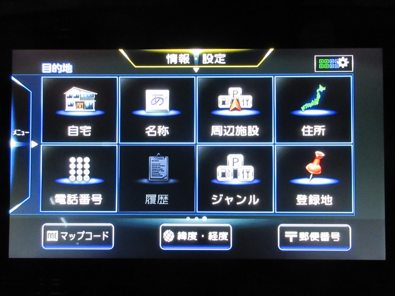 | カーナビ/DA | メモリーナビ(IN) またはナビ付きDA | TV | 地デジ(フルセグ) |