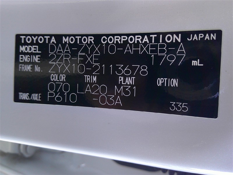 店舗管理ナンバー【531010766052】車台番号(下3桁)【678】