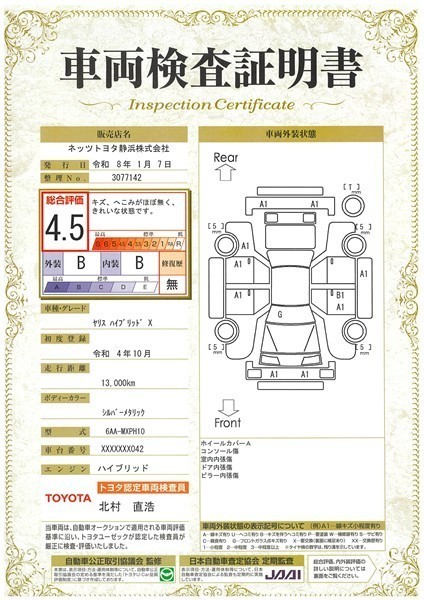 - 注1)本ページに掲載された評価は、車両検査実施時の車両状態を示したものです。