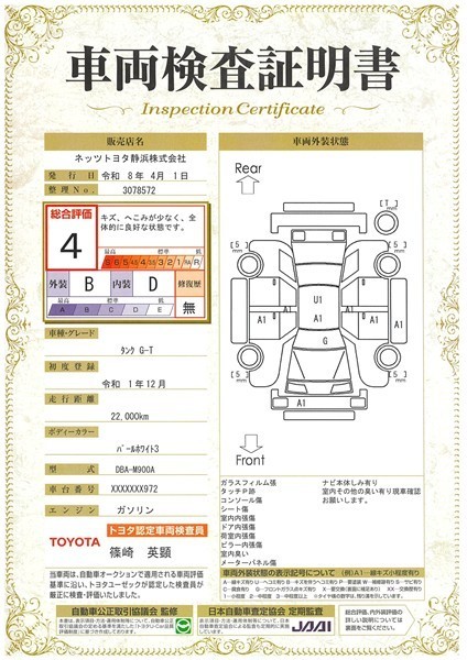 本ページに掲載された評価は、車両検査実施時の車両状態を示したものです。