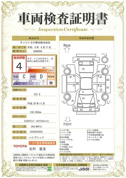 本ページに掲載された評価は、車両検査実施時の車両状態を示したものです。