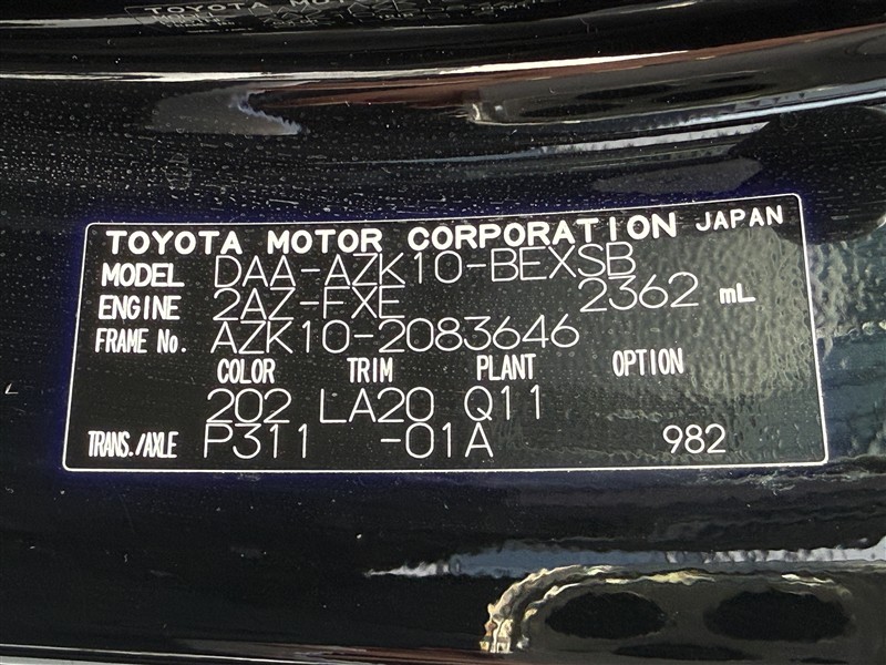 店舗管理ナンバー【553025622351】車台番号(下3桁)【646】
