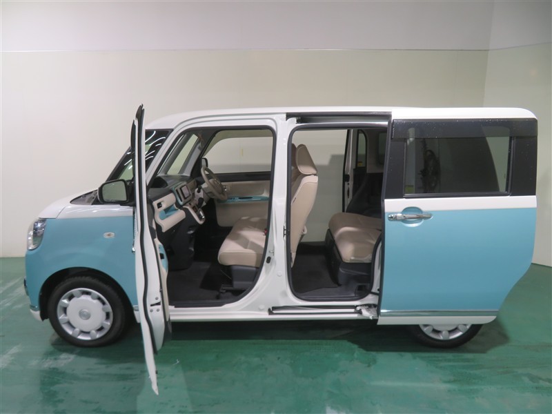 親しみやすいデザインのムーヴキャンバス。機能性と安全性能に優れ、両側パワースライドドアも搭載した使いやすいクルマです!