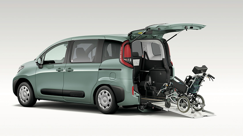 新型シエンタではハイブリッドモデル含め設定グレードを拡大し、福祉タクシーやデイサービス送迎現場の困りごとに対応している。車いす仕様車は、車いすの乗車から固定までの一連の動作をシンプルな機構とし、操作性を向上。また、省スペース&短時間を実現するショートスロープ等の新機能を備えたタイプⅢを新たに設定した。