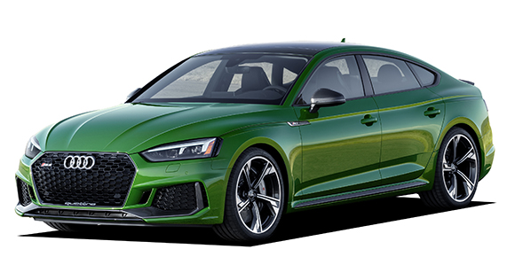 アウディ「A5」シリーズのトップモデル「RS5スポーツバック」。エンジンは最高出力331kW(450馬力)、最大トルクは600Nmを発揮する新開発の2.9L V6ツインターボ2.9TFSIを搭載。8速ティプトロニックトランスミッションとquattro(フルタイム4WDシステム)を組み合わせる。DRC(ダイナミック・ライド・コントロール)付スポーツサスペンションプラスや、さらにリヤアクスルには左右の駆動力配分を最適化するスポーツディファレンシャルを標準装備とすることで大パワーを確実に路面に伝達し、優れた高速安定性と操縦安定性を実現。またアウディ独自の燃焼方式であるBサイクルの採用により、11.2km/L(JC08モード)の低燃費を両立。エクステリアでは、下部にquattroのロゴを配した専用のシングルフレームグリルや大型のエアインレット、さらに専用の前後バンパーやリヤディフューザーを採用することで、RSモデルらしく、より一層スポーティさを強調。またマットアルミニウムルックとグロスブラックの2種類のカーボンスタイリングパッケージなど、豊富なオプションも用意。標準装備のマトリクスLEDヘッドライトはカラーベゼルを採用することで、他のグレードとの差別化を図っている。全幅は標準モデルに比べて15mm拡大。20インチの5アームトラペゾイダルデザイングロスアンスラサイトブラックポリッシュトアルミホイールを標準装備。強力なセラミックブレーキもオプション設定している。インテリアは、ダイヤモンドステッチングが施されたファインナッパレザーのSスポーツシートや、アルミニウムレースのデコラティブパネルを装備。またステアリングやセレクターレバー、センタコンソールサイドにアルカンターラを採用し、シートベルトも合わせて赤いステッチが施されたRSデザインパッケージをオプションで用意している。また、メーターパネル内に設置された12.3インチのTFT(液晶)ディスプレイにスピードメーターやタコメーターだけでなく、ナビゲーションシステムをはじめとする様々な情報を表示できるアウディバーチャルコックピットを標準装備。さらに、アウディプレセンスシティ(衝突被害軽減セーフティシステム)をはじめ、数々の最新安全技術とアシスタンスシステムも搭載。左右ハンドルの設定。
