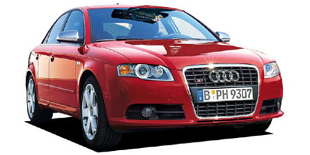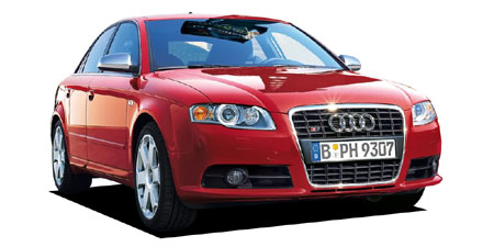プレミアムブランド、アウディの中にあって、別格の高性能が与えられたモデルのみに冠せられる「S」。アウディS4は、ミドルレンジA4のもつシャープなボディラインや巧みな面構成はそのままに、超弩級のパフォーマンスを秘める凄みを持ち合わせる。サルーン/アバントの両ボディタイプに同様のチューニングが施され、搭載されるエンジンはV型8気筒DOHC 5バルブの4.2L。344馬力を発生し、クワトロ(フルタイム4WD)システムとの組み合わせとなる。トランスミッションは電子制御6速AT(ティプトロニック)。バリエーションは各ボディタイプにモノグレードの設定。専用スポーツサスペンションにアーヴスデザインアルミホイール(8Jx18)、専用フロントグリルとバンパーは圧倒的な迫力をもち、ドアアンダープロテクターを装備する。インテリアには前後本革とアルカンタラのコンビネーションのレカロスポーツシート、ティプトロニックパドルスイッチ付本革巻き3スポークステアリング、カーボンパネルなどで一層スポーティ・イメージを強める。安全装備として、計8つとなるデュアル&前後サイド&ヘッドエアバッグ、エレクトロニック・スタビリティ・プログラムESP(EBD付きABS、EDS、トラクションコントロールASR機能を含む)、ブレーキアシストなど、盗難防止機構にイモビライザーが装備される。S4、S4アバントともに左右ハンドルの設定。
